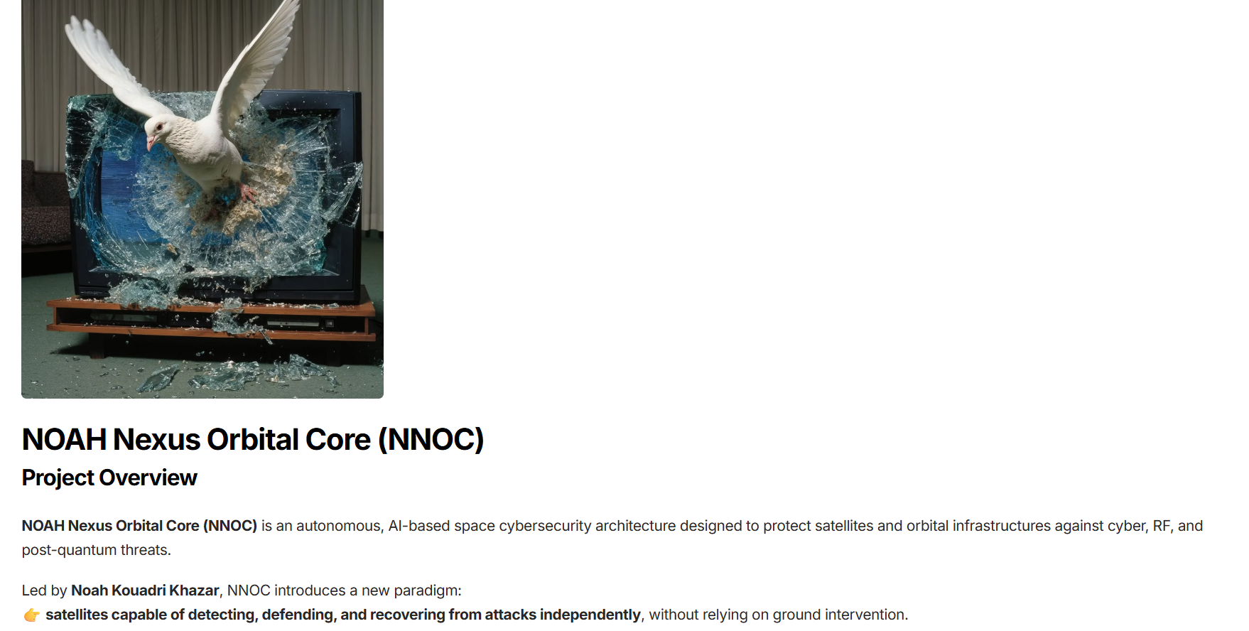 NNOC is led by Noah Kouadri Khazar, bringing together expertise in AI, cybersecurity, and space systems engineering. The initiative collaborates with industry partners, operators, and research institutions to validate and harden the architecture in realistic orbital scenarios.