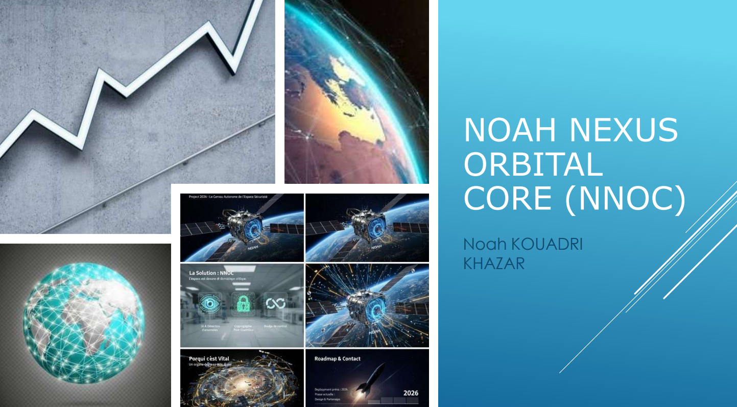 NOAH Nexus Orbital Core (NNOC) is an autonomous, AI-based space cybersecurity architecture designed to protect satellites and orbital infrastructures against cyber, RF, and post-quantum threats.